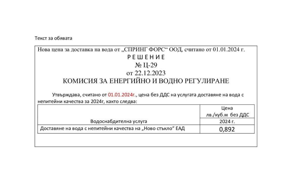 - Собствен сондажен кладенец със съответните съоръжения и санитарно-охранителна зона